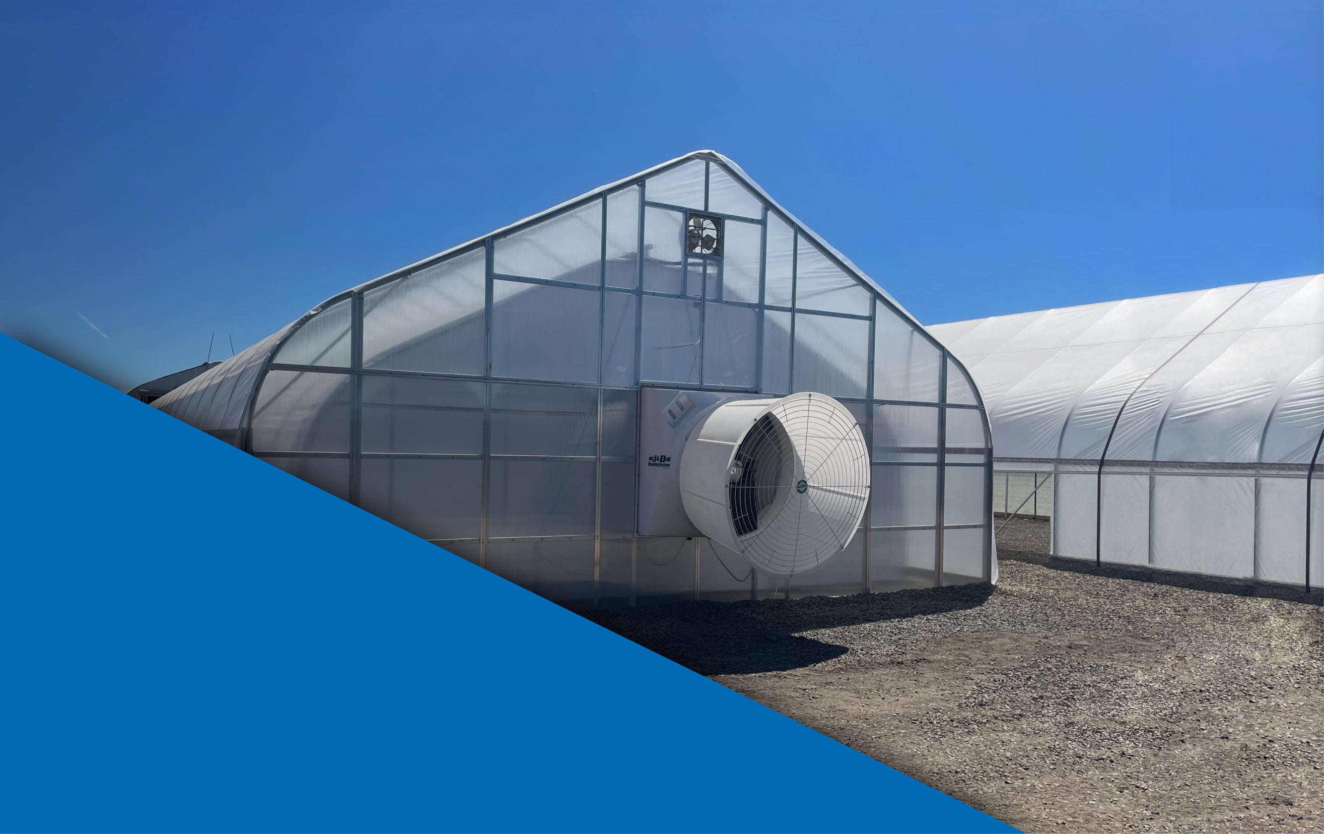 Opens with exhaust fans to exchange greenhouse air in one minute.