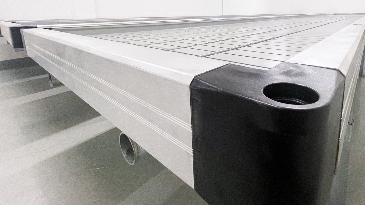 Pre drilled holes in the side profile allow easier installation and removal of trellis support poles and safe travel through the aisles.