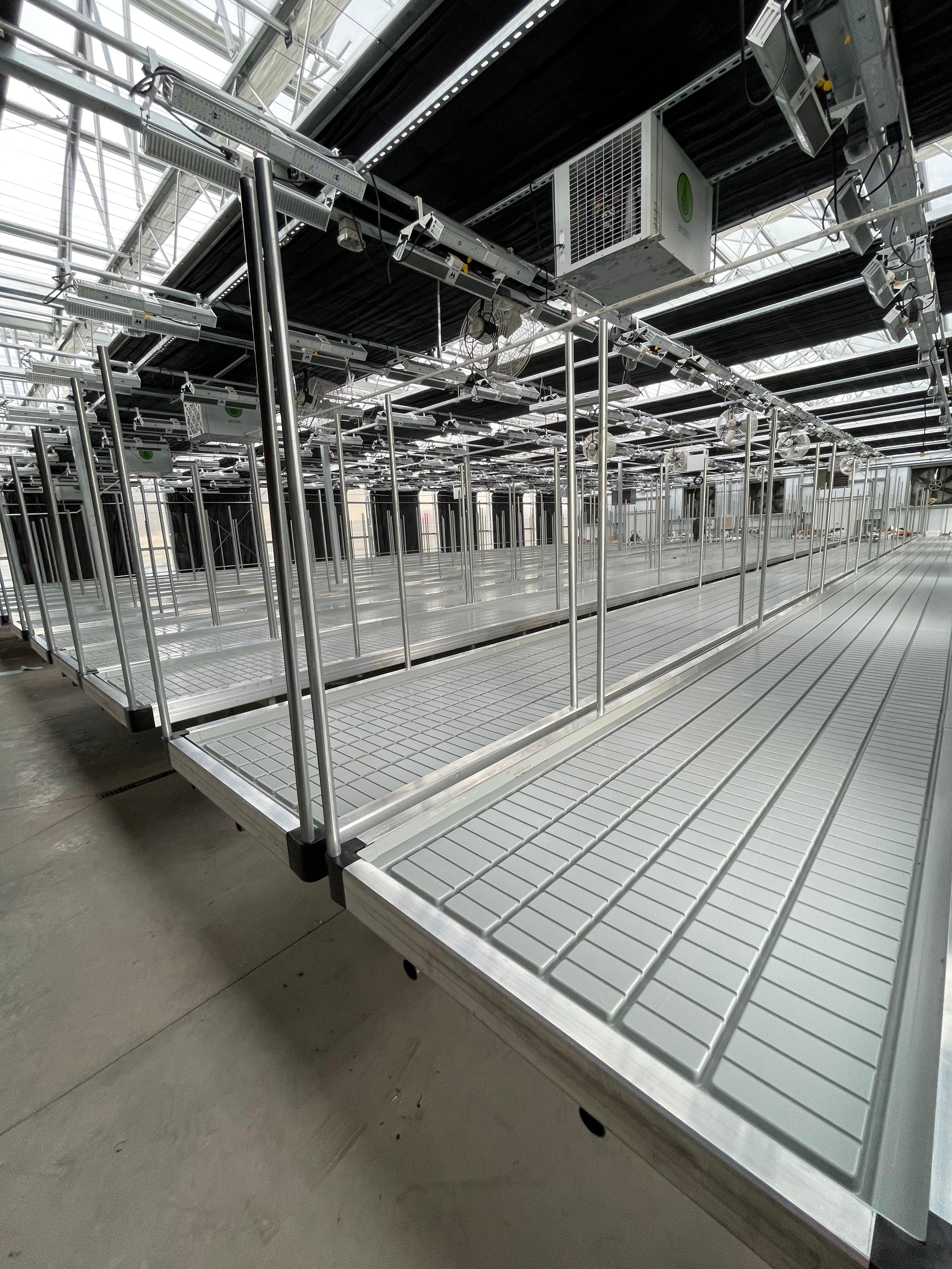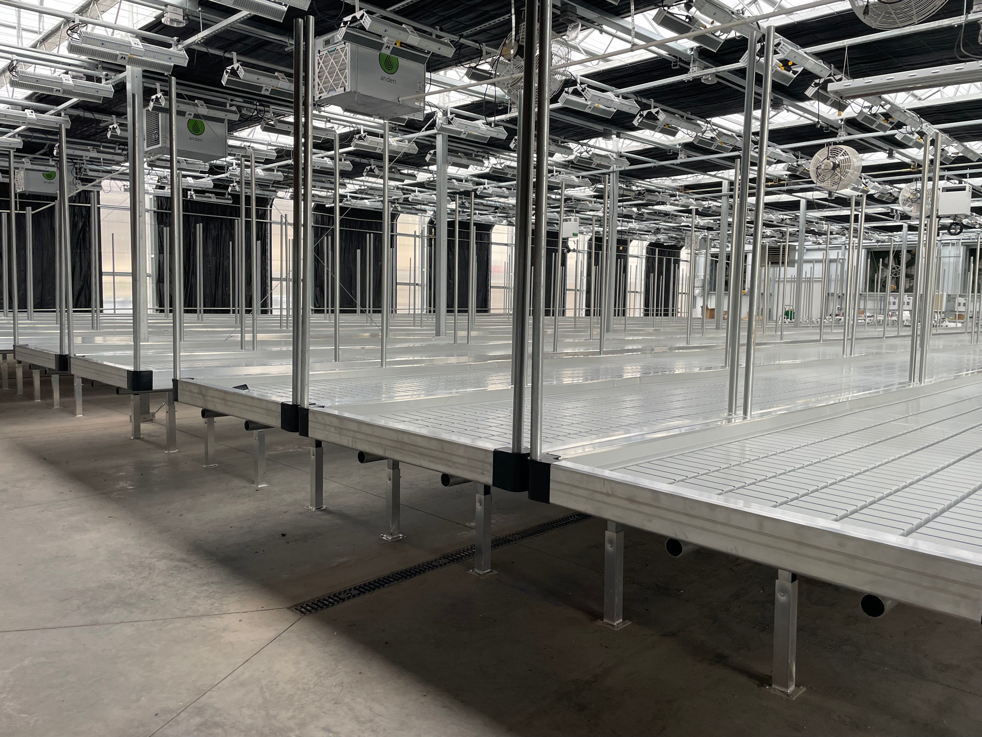 Provided they are heavy duty, single-tier benches are low entry cost, efficient, high output growing solutions for indoor and greenhouse operations. Although plants grow larger and require longer veg terms, there are savings in power, labor, and water. Systems maintenance is considerably more straightforward, and overall the system is easier to manage.
