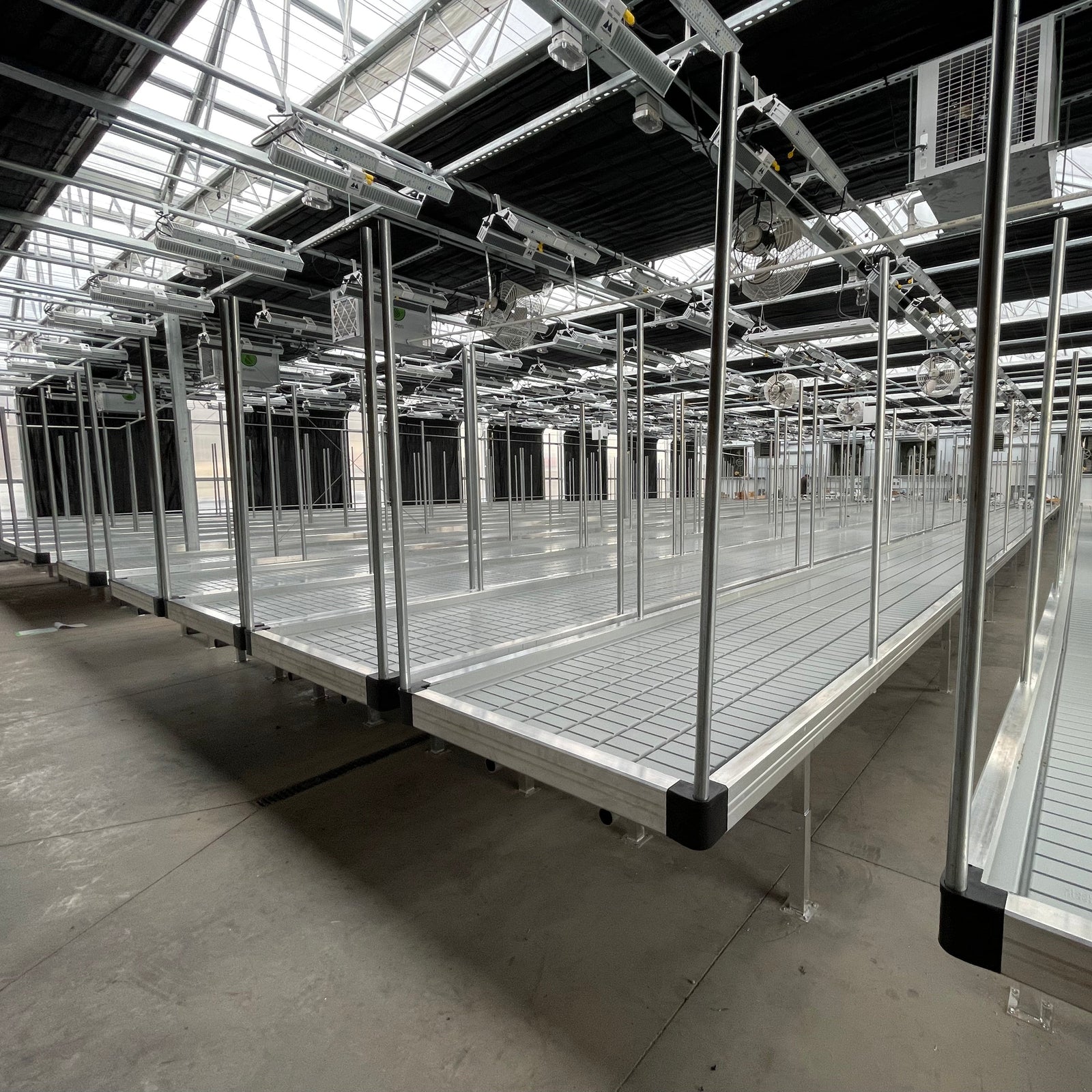 Rolling benches can increase the canopy in a grow room by up to 33% by removing all but one aisle.